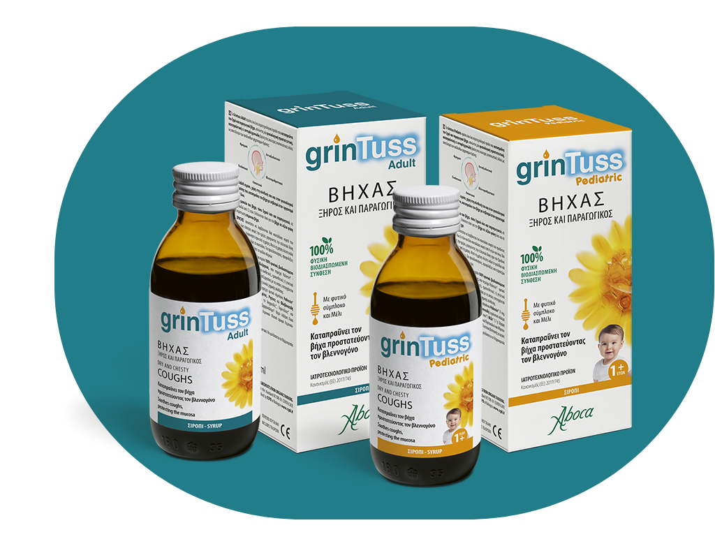 Τα προϊόντα της σειράς Grintuss, χάρη στη σύνθεσή τους και τον φυσιολογικό μηχανισμό δράσης, καταπραΰνουν τον βήχα με σεβασμό για τον οργανισμό και το περιβάλλον.